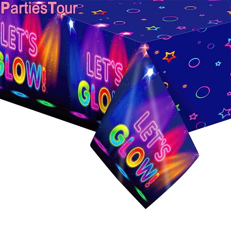 Świecące w promieniowaniu UV Zastawa stołowa Obrusy Kubki Talerze Baner Serwetki Słomki Balony Neonowe Świecące Materiały Urodzinowe